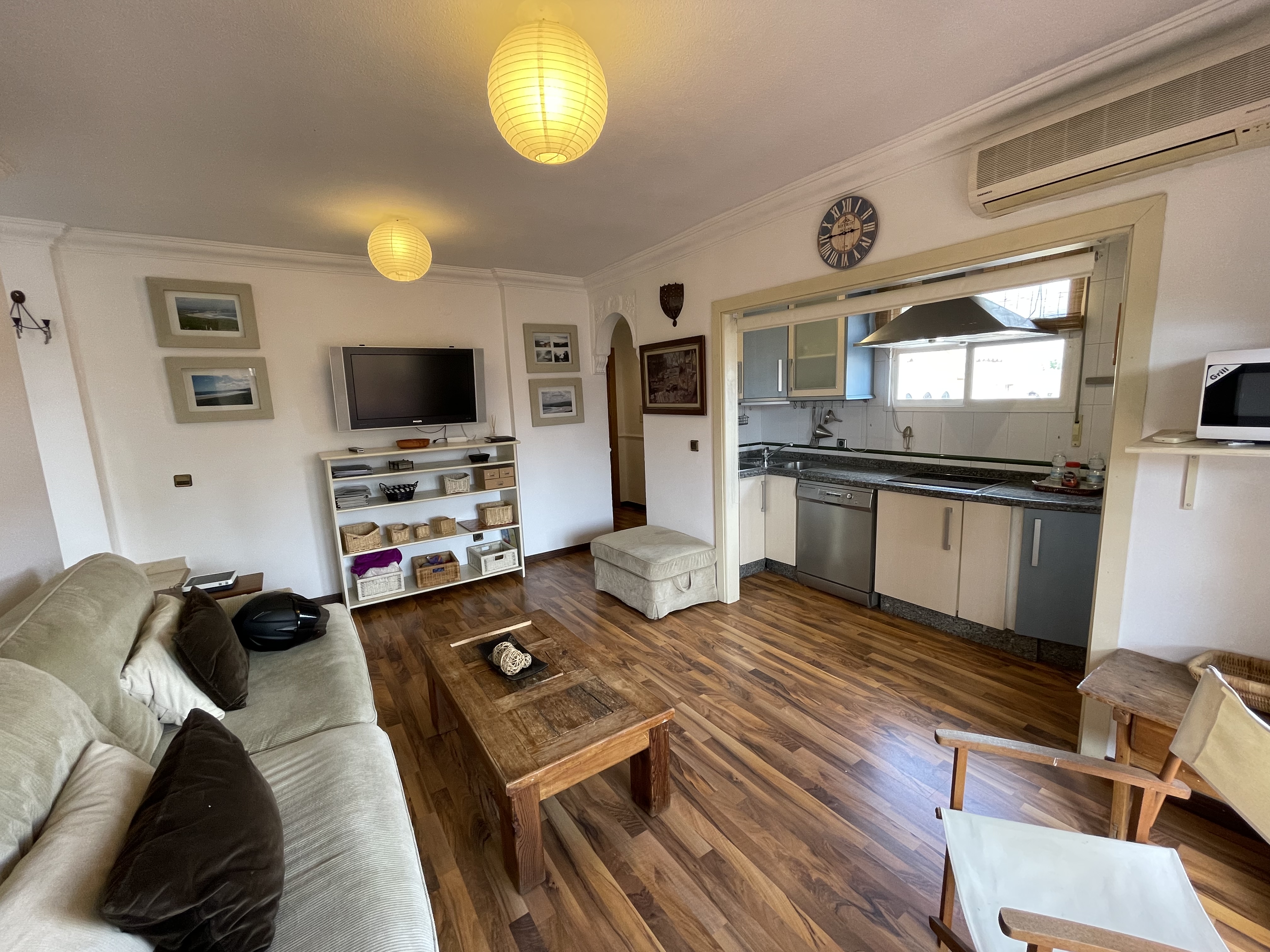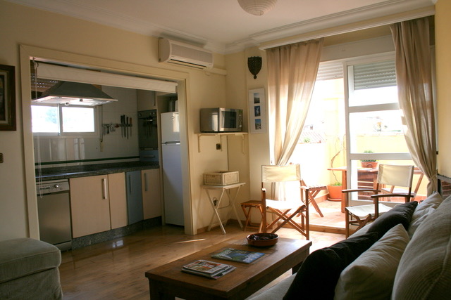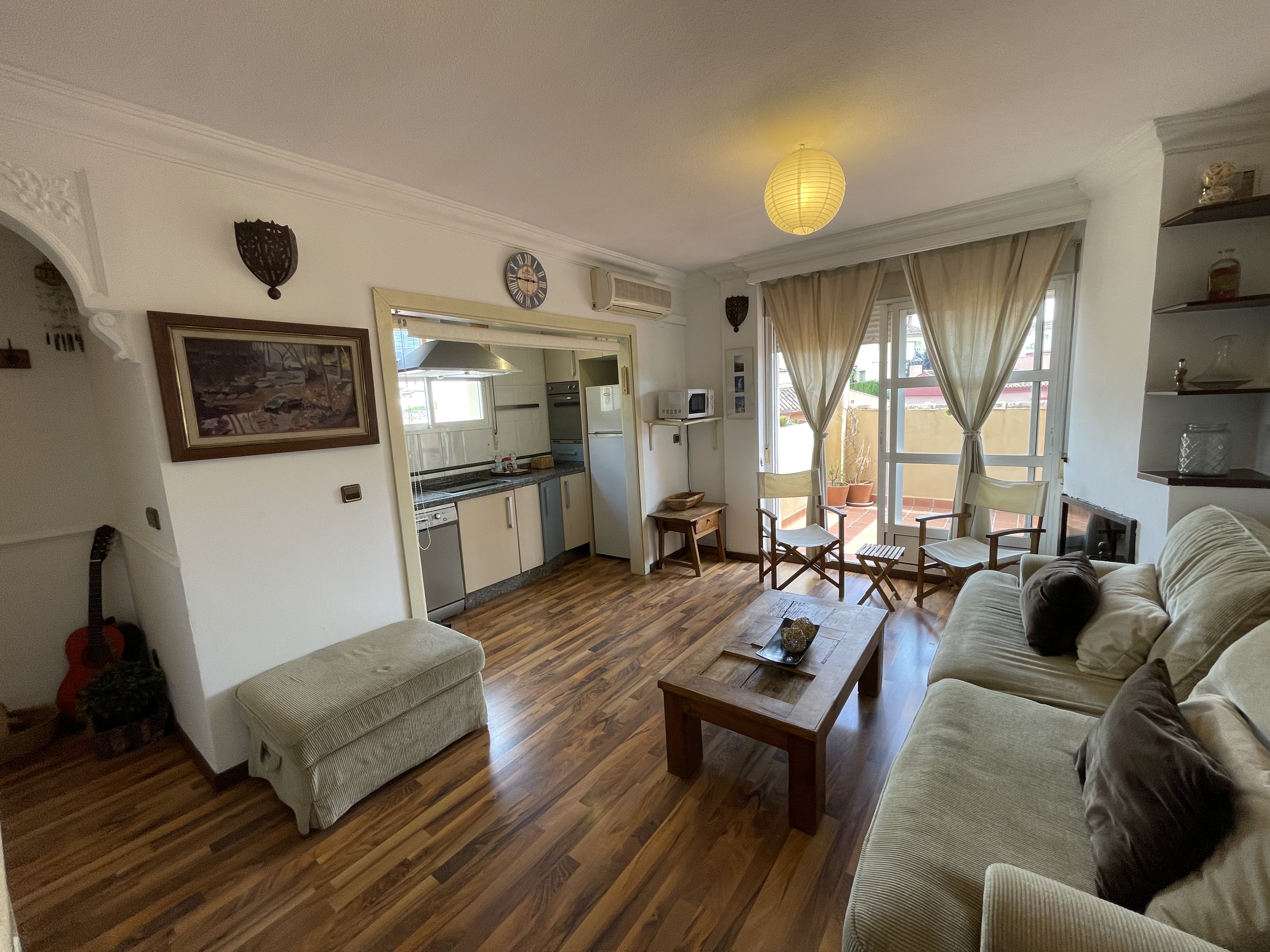 Amplio salón con cocina incorporada y salida a la terraza.