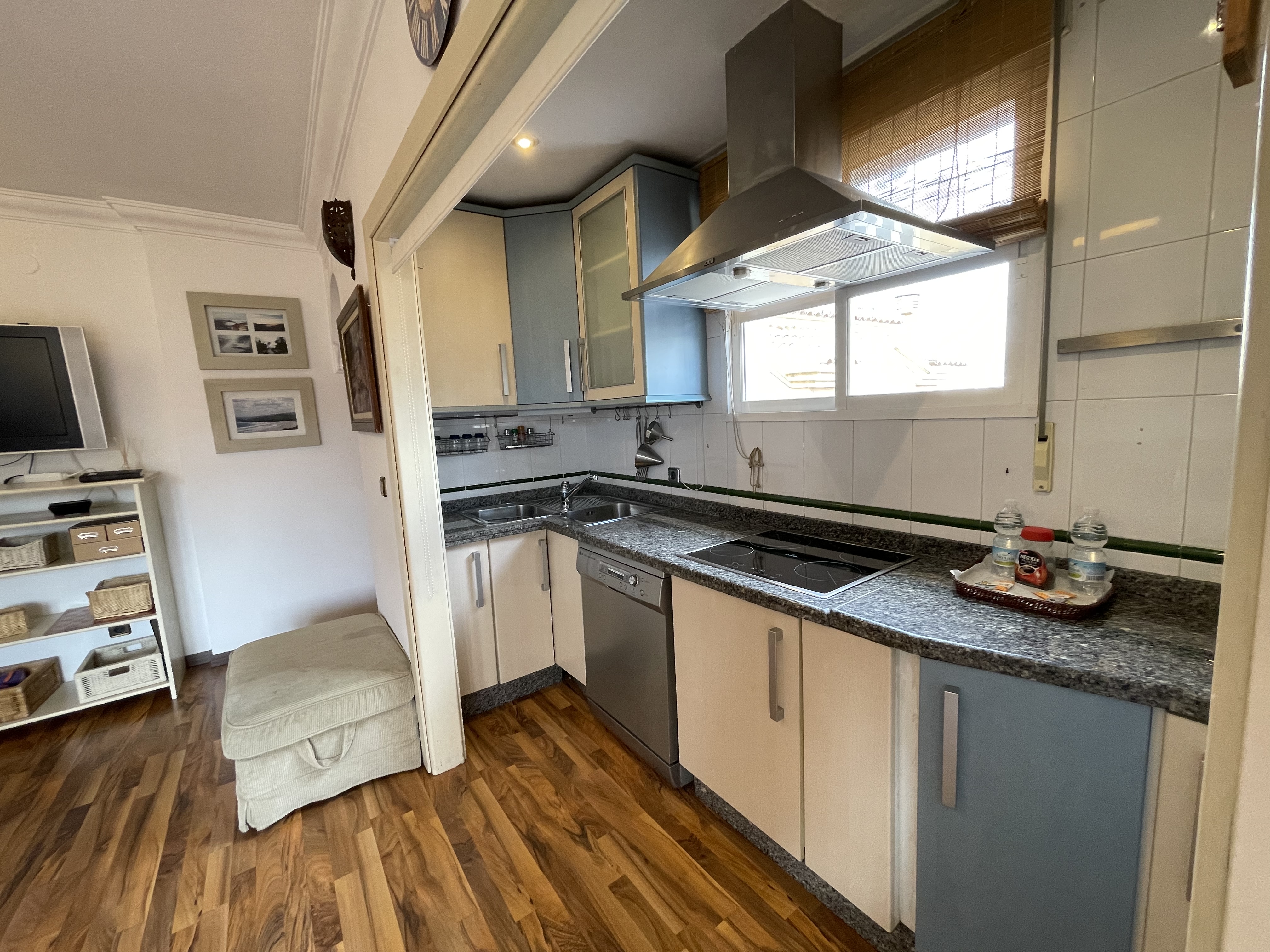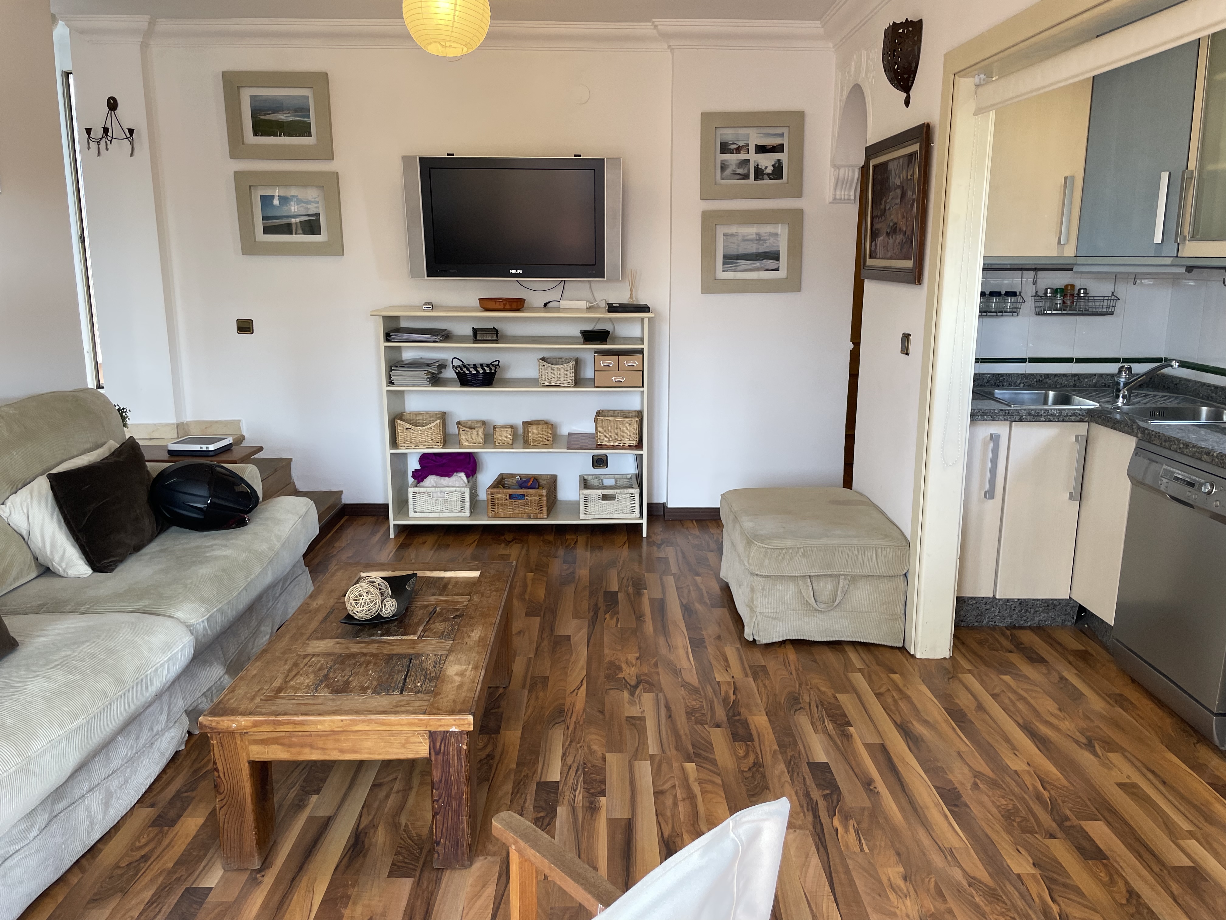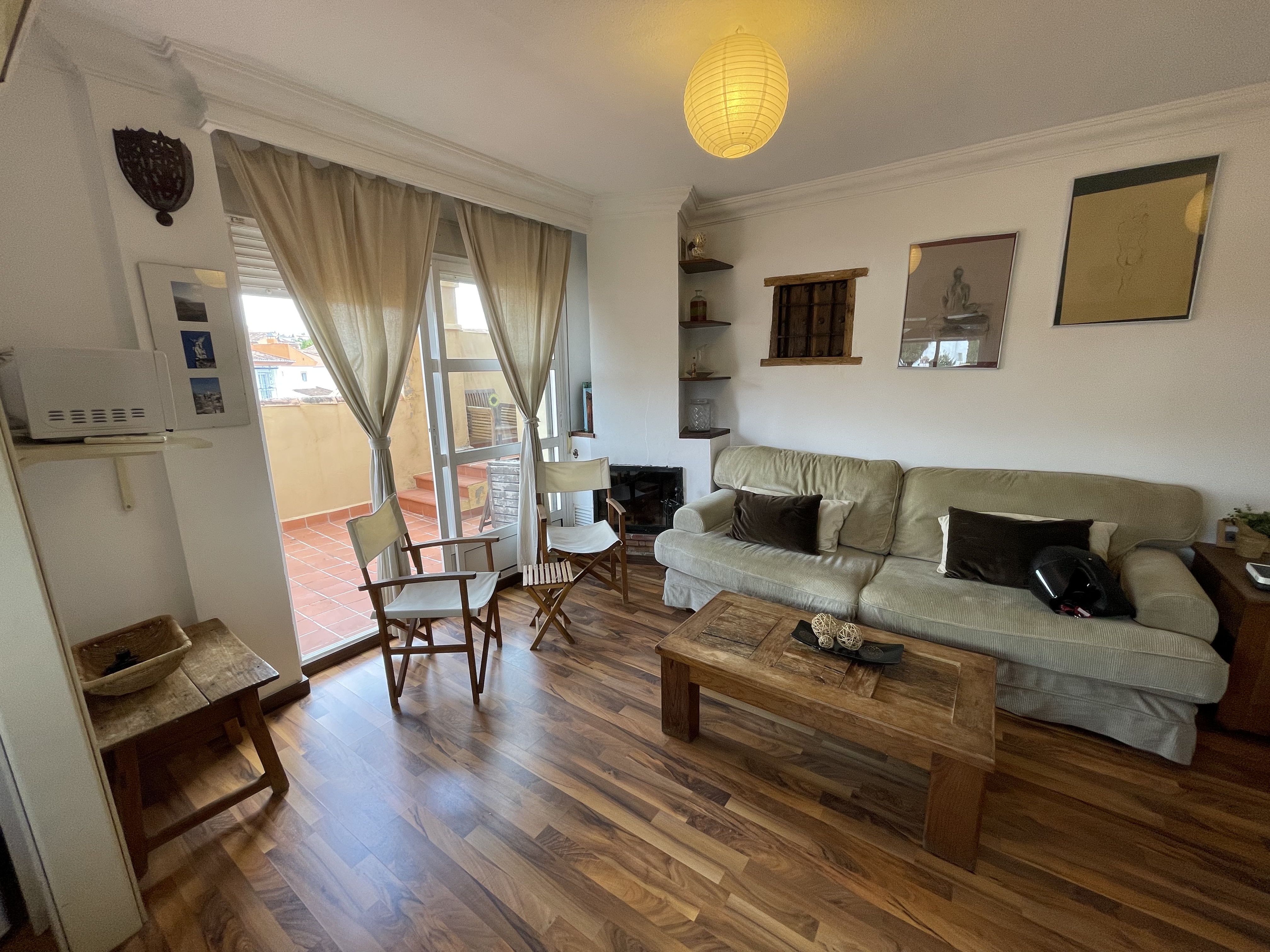 Amplio salón con cocina incorporada y salida a la terraza.