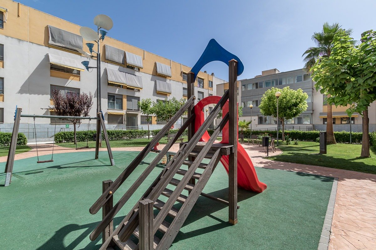Tus hijos y tu disfrutarán de espacios comunes maravillosos con zona de juegos y columpios, piscina e incluso una fuente de agua para beber.