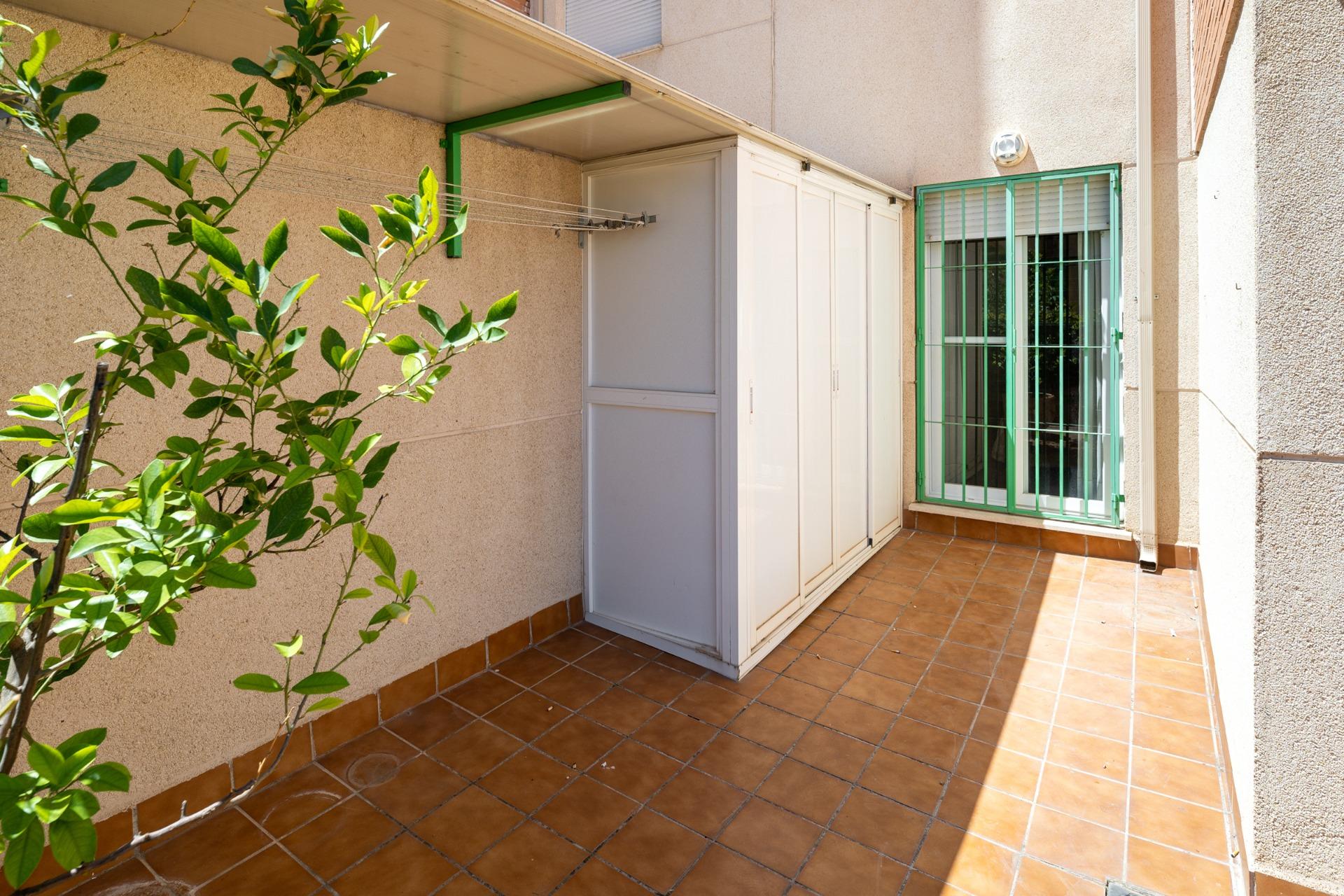 El piso fue construido en 2004 y está equipado con todas las comodidades modernas, incluyendo aire acondicionado, calefacción y armarios empotrados en los dormitorios. Además, tiene una práctica despensa para mayor almacenamiento. La propiedad incluye una cochera, lo que facilita el aparcamiento en una zona donde no siempre es fácil encontrar espacio.