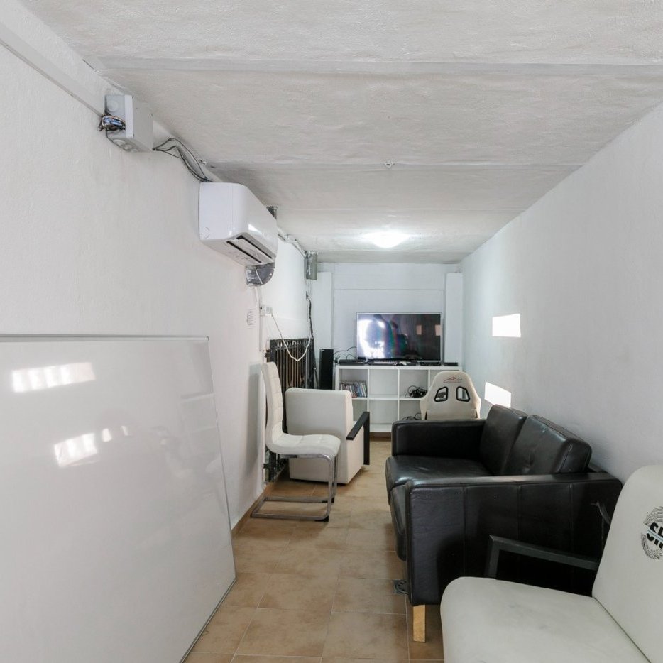 Desde la planta baja se accede a la zona donde tenemos la entrada al garaje pasando por las escaleras y también se accede a un baño y dormitorio.