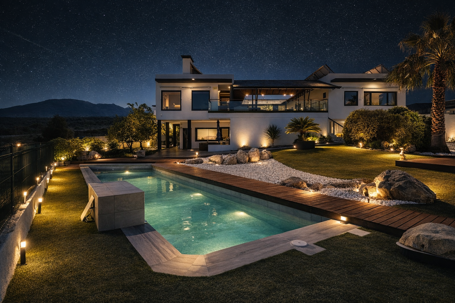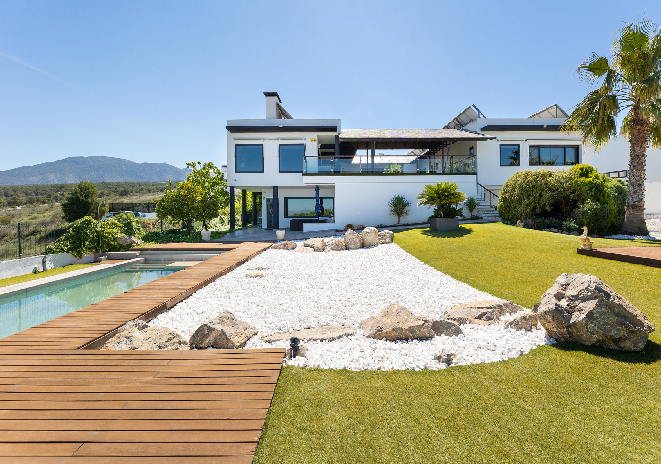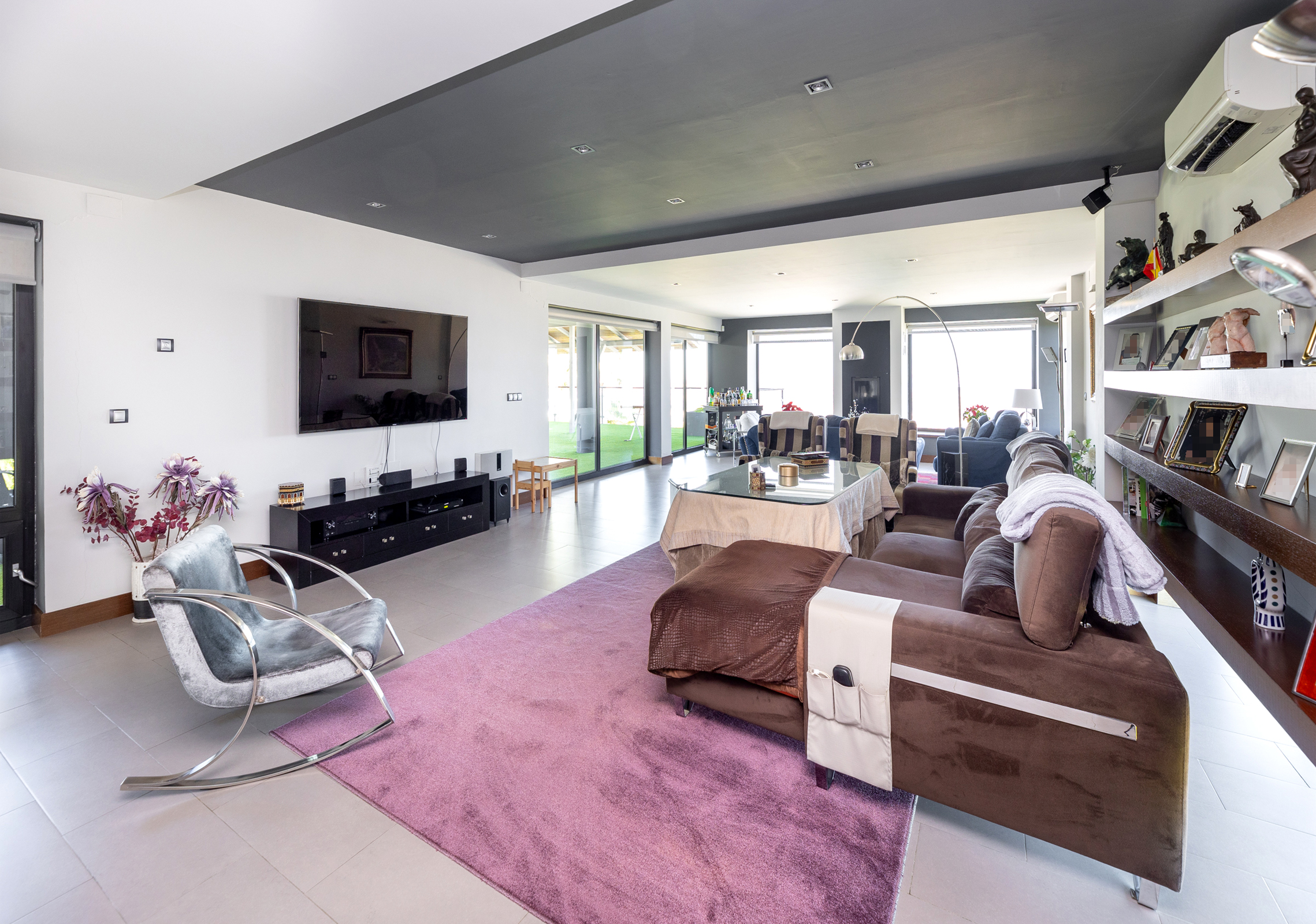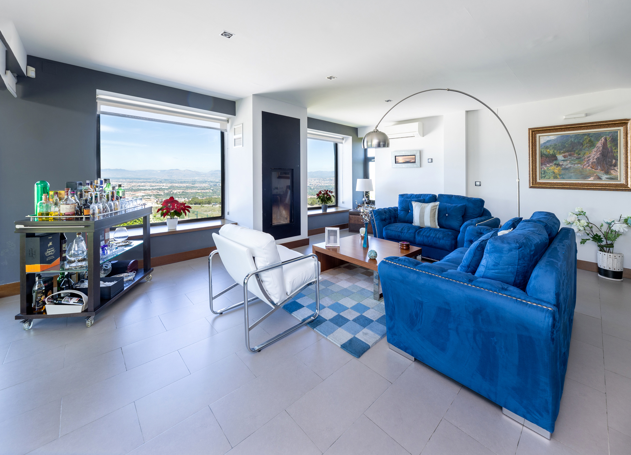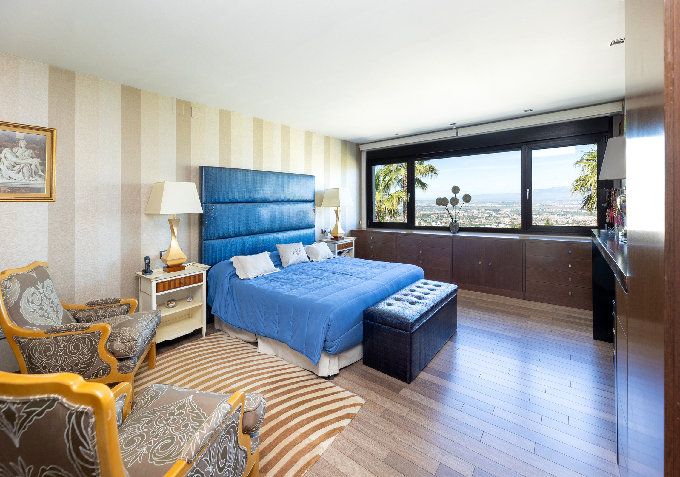 Luxury villa with a pool, elevator, solar power, and a prime location near Granada, in Altos de La Zubia. A spectacular, high-end detached home designed to offer maximum comfort, spaciousness, and energy efficiency, located in an exclusive residential area just minutes from the city of Granada. The property stands out for its excellent construction, spacious interior and exterior areas, as well as its advanced energy-saving systems. It features 50 photovoltaic panels, a solar water heating system, and a large storage tank, allowing for very low energy consumption throughout the year. Floor Plan Upper Floor: Elegant entryway, spacious living room, kitchen with dining area, terrace, interior elevator with access to the ground floor, staircase, four bedrooms (one currently converted into a walk-in closet), three en-suite bathrooms and a half-bath, laundry room and drying area, as well as an indoor drying room. It also features porcelain tile underfloor heating, Climalit double-glazed security windows, an automatic blind in the master bedroom, and motorized shades in the living room. Ground Floor: Large living room with a fireplace, two interior bathrooms, a covered porch, an outdoor bathroom, and an impressive open-concept room of approximately 120 m², ideal as a gym, leisure area, event space, home theater, or separate apartment. Outdoor Area The property features artificial turf surrounding the entire home, with an automatic drip irrigation system powered by rainwater collected and stored in five tanks. A magnificent 14 x 4-meter swimming pool, renovated two years ago, featuring a waterfall and an elegant perimeter area finished in porcelain tile and wood. Excellent location Located in a strategic setting: • Sierra Nevada 30 minutes away • Costa Tropical of Granada 40 minutes away • Nevada Shopping 12 minutes away • PTS Granada Hospital 12 minutes away • Montessori International School of Granada nearby • Granada Airport 25 minutes away • 1 hour from our charming Alpujarras Expenses • Community fees: €300/year • Property tax (IBI): €1,800/year An exclusive property for those seeking quality of life, privacy, spaciousness, and a home ready for the future.